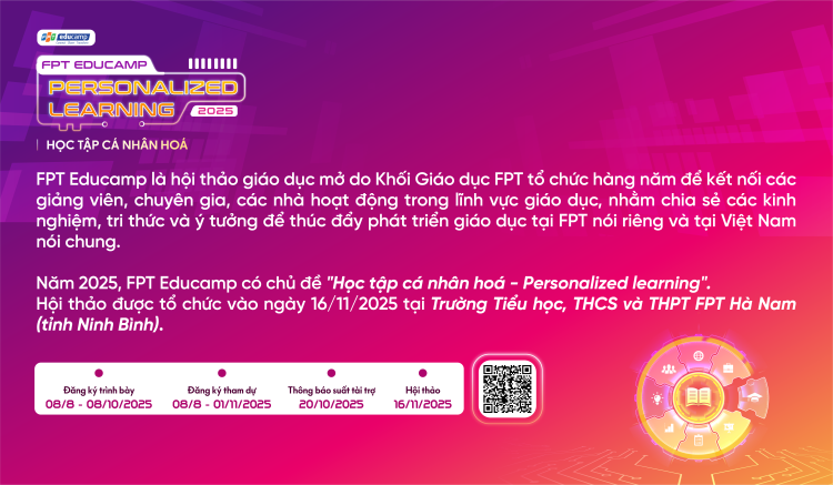 Học tập cá nhân hoá - xu hướng giáo dục tiên tiến trong bối cảnh chuyển đổi số được chọn là chủ đề của Hội thảo FPT Educamp 2025. Ngay từ bây giờ, cán bộ, giảng viên Khối Giáo dục FPT và những người q...