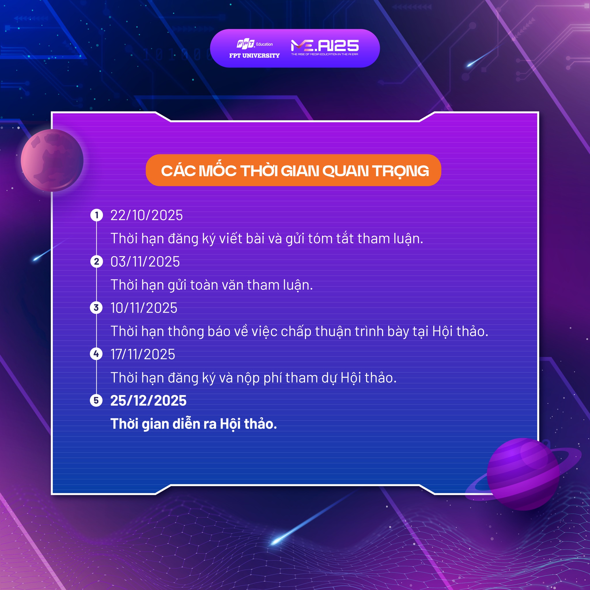 10/11/2025: Thời hạn thông báo về việc chấp thuận trình bày tại Hội thảo.