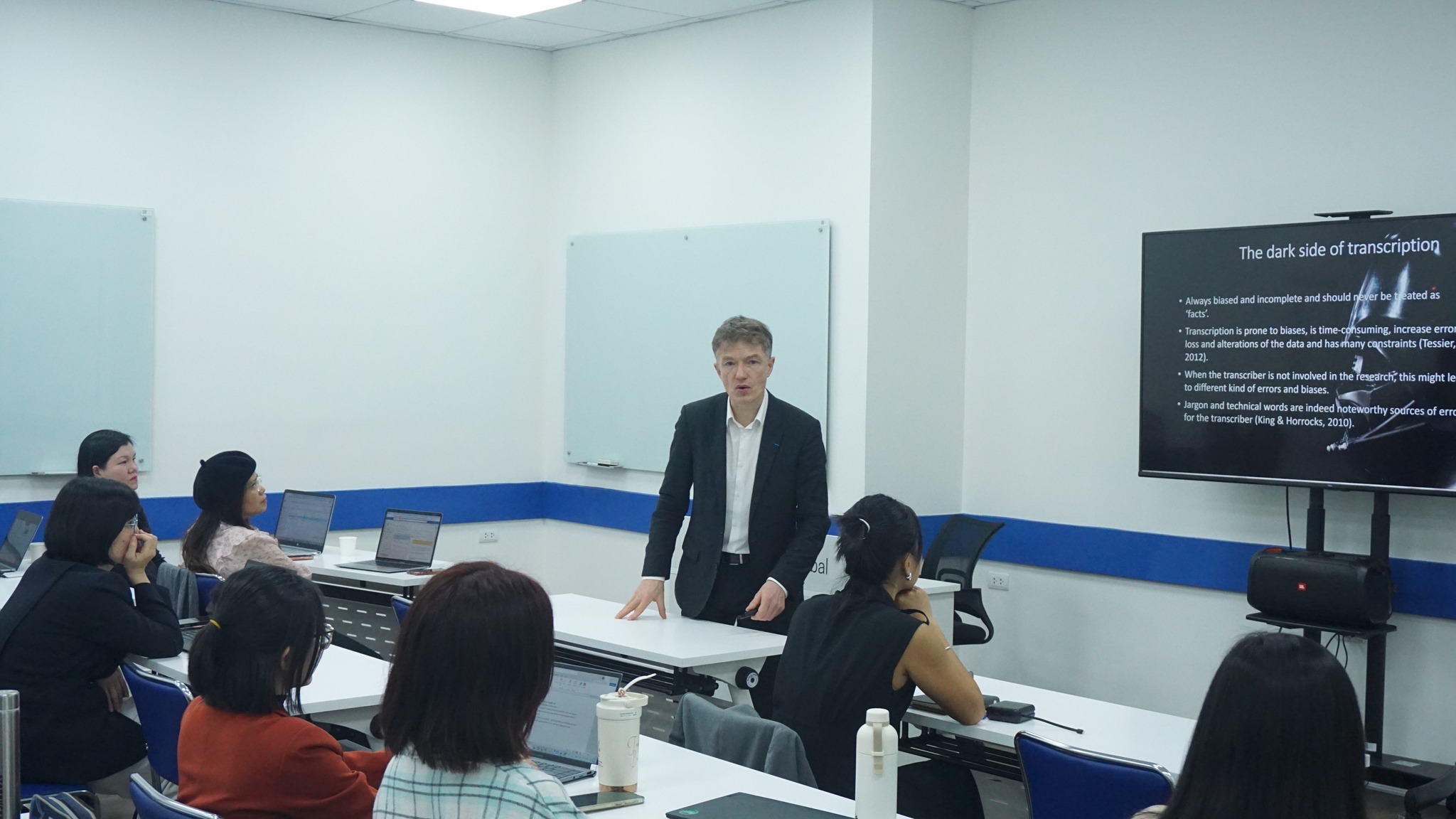 Vừa qua, vào 16:00 ngày 25/02 tại Greenwich Vietnam (cơ sở Hà Nội), một buổi tọa đàm chuyên sâu với chủ đề “Rethinking Transcription in Qualitative Research” (Tái tư duy về chuyển biên trong nghiên cứu định tính) đã diễn ra thành công tốt đẹp, để lại nhiều dư âm giá trị cho các học viên MBA và cán bộ giảng viên của FGW Hà Nội đã tham dự.