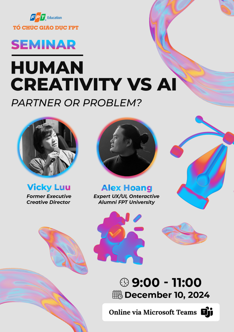 Tham gia seminar của chúng tôi để cùng nhau tìm câu trả lời và khám phá những góc khuất của cuộc chiến sáng tạo giữa con người và AI.