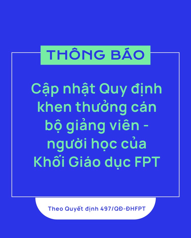 Thông báo cập nhật Quy định khen thưởng cán bộ giảng viên - người học theo Quyết định 497/QĐ-ĐHFPT